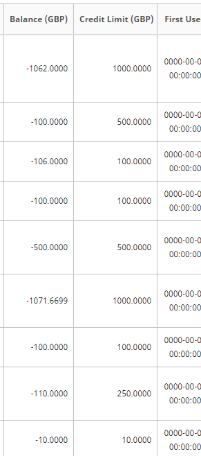 ok, As per my other entry where crediting creates a negative figure, if I revert the balance value back to a negative figure then it works! So for now all my balances look like this! |