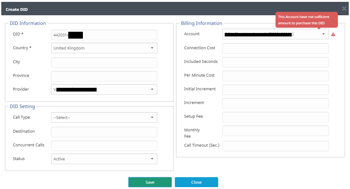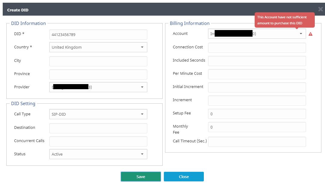 Current Behaviour: Try to assign DID with zero cost, get "This Account have not sufficient amount to purchase this DID" message. Expected Behaviour: DID is assigned to account. Guys - I don't understand this one well enough to fix it myself and send you a PR for it. |