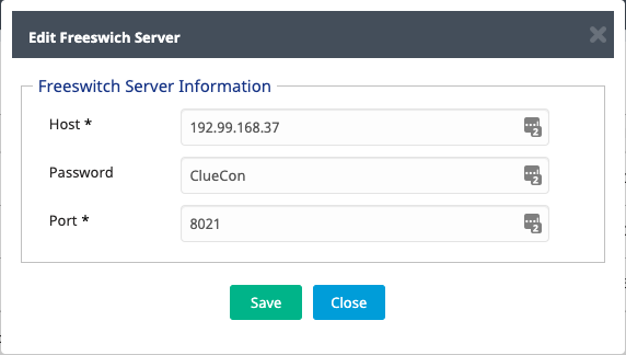 To generate live call report data you must have to add Freeswitch server details. Please confirm the details for Freeswitch server, you have added on ASTPP GUI it must be correct. |